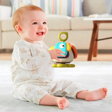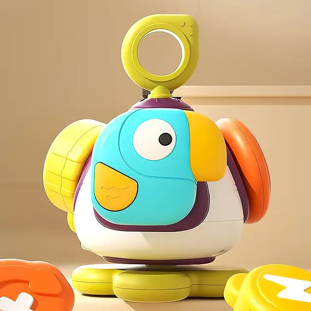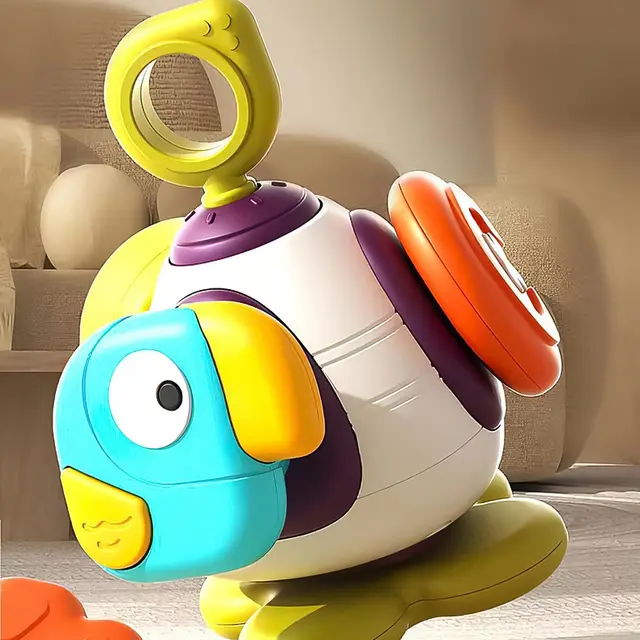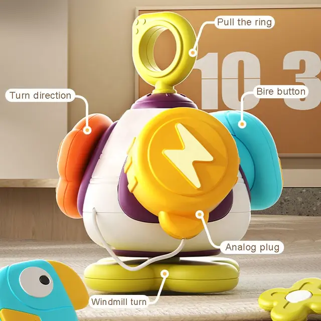 در یک قسمت چفت کردن و جا زدن کلید و در قسمتی دیگر یک اسپینر چرخان و جذاب و همینطور در سمتی دیگر یک طوطی که میتوان آن را فشار داد و صدای بوق می دهد ولی این پایان ماجرا نیست فرزند شما در یک قسمت بازی هیجان انگیزی دارد که با پیچاندن فرمان با صدای تق تق شگفت زده خواهد شد