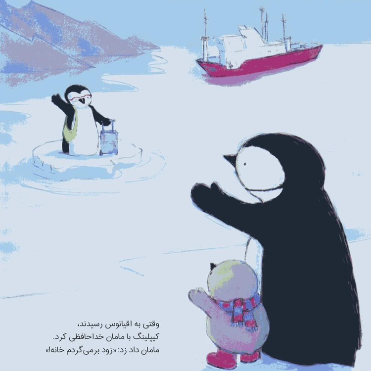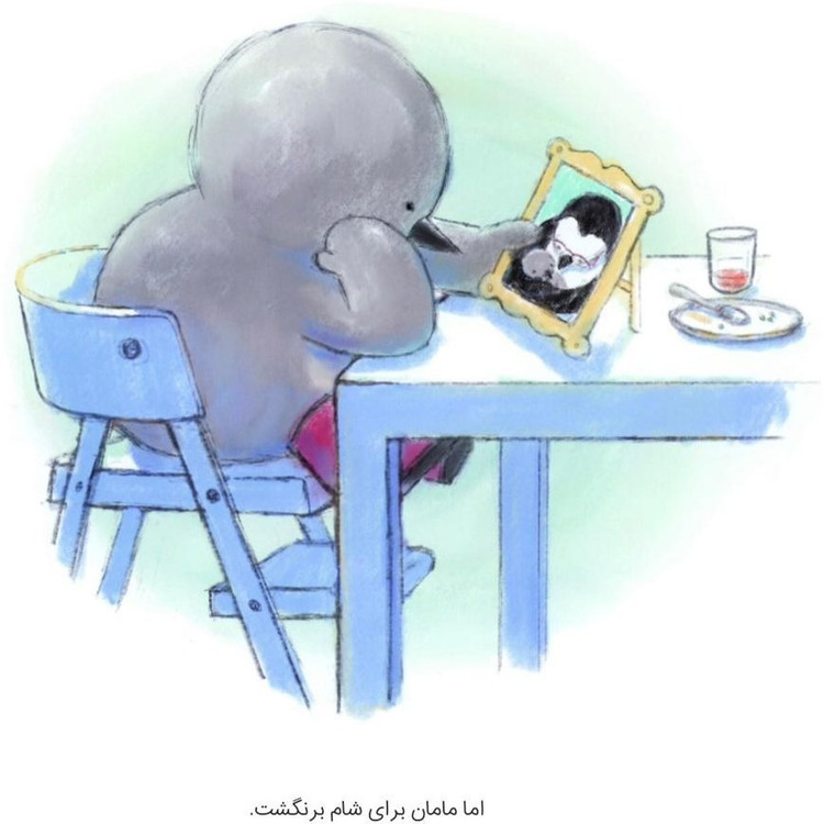 پنگوئن کوچولوی قصهی ما خیلی غمگین است. چون موقع شام شده اما هنوز مامانش از سفر برنگشته است؛ مامان حتی برای خوابیدن هم برنمیگردد. پنگوئن با بالش و عکس مامان بازی میکند، اما آنها هیچکدام مثل مامان خودش نیستند. او سنگهای آرزویش را میچیند و آرزو میکند مادرش هر چه زودتر برگردد.