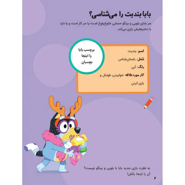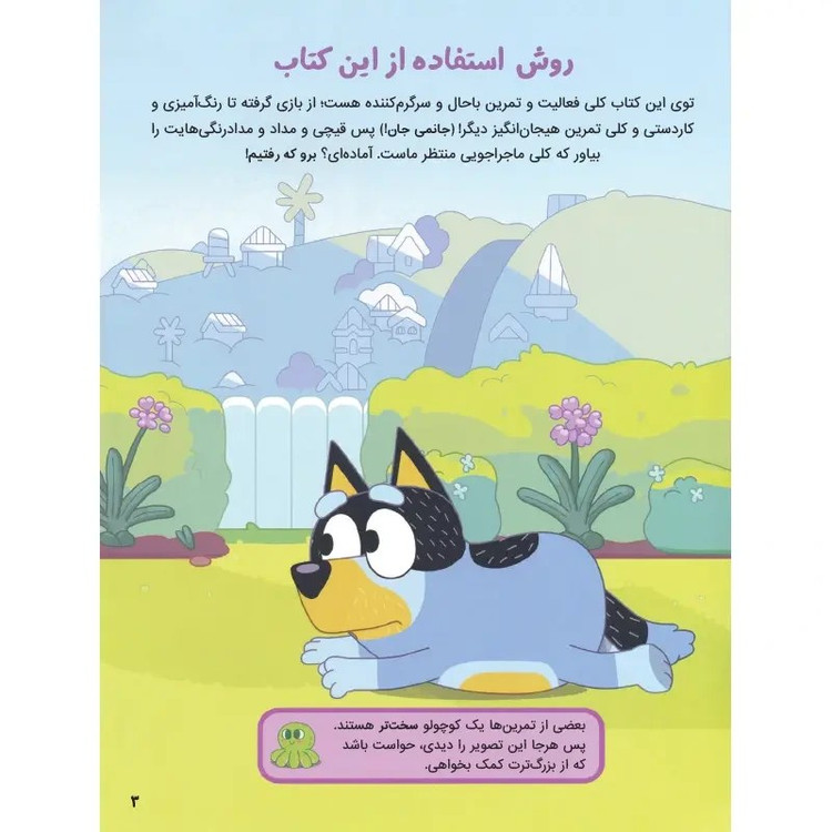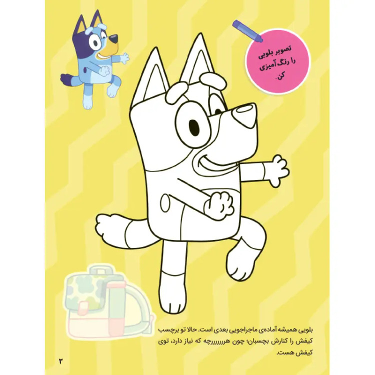 شخصیت کارتونی بلویی یک شخصیت بسیار پر طرفدار و سالم و آموزنده برای کودکان است. انتشارات پرتقال با الهام گرفتن از این شخصیت کارتونی سه جلد کتاب کار و فعالیت منتشر کرده که می تواند به خوبی مهارت های ذهنی و دستورزی کودکان را پرورش دهد.مجموعه کتابهای بلویی، تمرینهای خود را در قالب بازی و سرگرمی در اختیار کودک قرار میدهد. به همین دلیل نیز حل کردن این تمرینها کودکان را به وجد آورده و در حل مسائل، تقویت تمرکز و توجه، بهبود عملکرد حافظه و مهارت حرکتی و دستورزی به آنها کمک بسیار زیادی میکند. در مجموعه کتاب کارهای بلویی، با یک عالمه بازی و سرگرمی همراه میشویم تا به کمک آنها بتوانیم مهارتهای جدید یاد بگیریم. در این کتابها با بلویی و بینگو دنبال وسایل مختلف میگردیم، کاردستی درست میکنیم، رنگآمیزی انجام میدهیم و کلی خوشگذرانی میکنیم. کتابهای پرکار بلویی از انتشارات پرتقال دارای 24 صفحه و برچسب های رنگی است که باعث افزایش مهارتهای کلیدی در کودکان و تقویت تمرکز و هوش در آنها میشود.