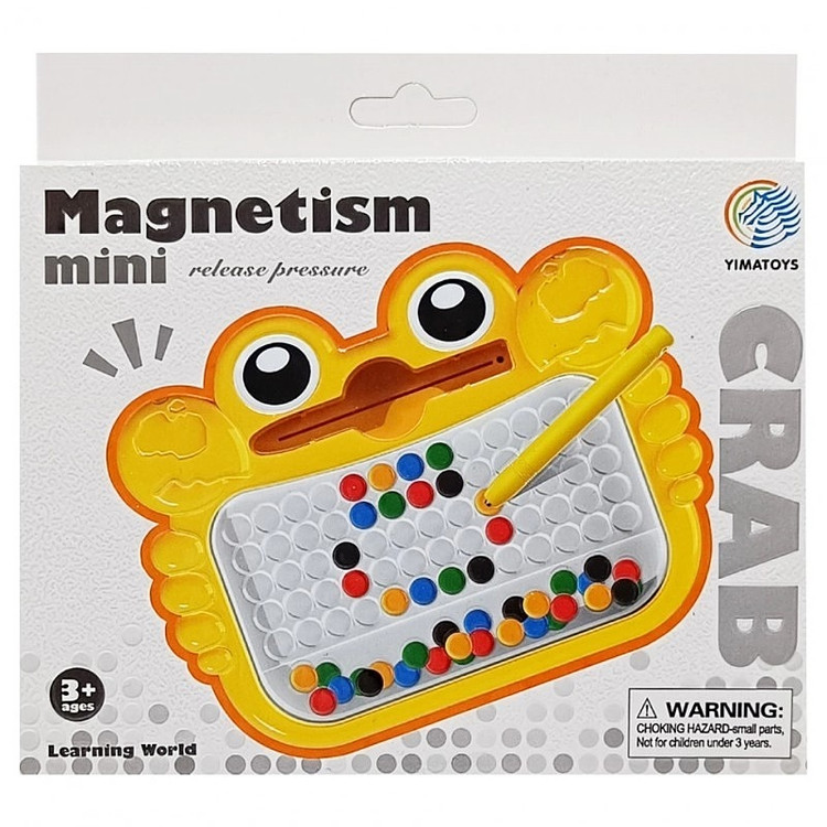 بازی مهارتی برد مگنتی طرح خرچنگ یک بازی بسیار عالی برای تقویت مهارت دست، بهبود مهارت حل مساله و الگوخوانی در کودکان بالای سه سال است. این بازی جالب شامل یک برد به طرح خرچنگ است که مهره های رنگی فلزی در صفحه ی 6 در 10 آن قرار گرفته. روی این صفحه را یک ورق طلق محکم و با دوام پوشانده است که مانع بیرون ریختن مهره ها از درون برد می شود.