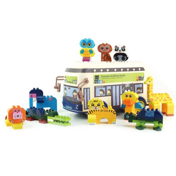 لگو اسمونو مدل اتوبوس حیوانات دارای جلوه های نوری و صوتی است رو روی قسمت جلوی این اتوبوس دکمه هایی قرار دارد که تنها با لمس کار میکنند. اتوبوس را با 3 عدد باتری قلمی روشن کنید و روی فرمان اتوبوس را لمس کنید تا صدای بوق شنیده شود. همچنین با لمس دنده روی شیشه جلو اتوبوس صدای استارت اتوبوس شنیده می شود. اگر روی کمک راننده لمس کنید مقصد های اتوبوس را به شما میگوید. اتوبوس دارای چندین دکمه موزیک، قوانین راهنمایی و رانندگی، داستان ، هشدار و .... است. این اتوبوس اسباب بازی دارای 136 تکه لگو دوپلوعه که کودک میتوانند با کمک دفترچه راهنما حیوانات مختلف را بسازند.