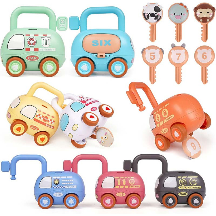 کلید ماشین اسباب بازی یک اسباب بازی جدید برای گروه سنی 3 سال به بالا است که باعث تقویت مهارت های دست ورزی کودک می شود. این اسباب بازی دارای 1 عدد ماشین طرح اتوبوس، پلیس، آتش نشانی، آمبولانس و... است که به شکل قفل طراحی شده است و 1 عدد کلید به همراه دارد که تنها به ماشین شماره خودش متصل می شود و آن را باز میکند. در کنار این ماشین یک محفظه قرار دارد که کودک می تواند خوراکی های کوچکش را درون آن قرار دهد.