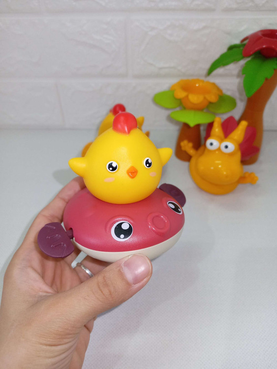 با کشیدن نخ پشت اسباب بازی و رها کردن در آب شنا میکند