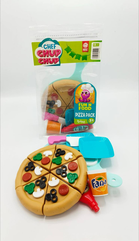 این اسباب بازی آموزشی جذاب شامل 38 قطعه متشکل از سس ،لیوان ، چاقو ، بشقاب قطعات تزئینی برای روی پیتزا و یک تخته پلاستیکی می باشد.