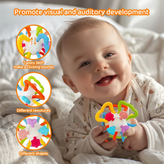 دندان گیر فضایی یک توپ با تعداد زیادی دندان گیر میباشد همین موضوع باعث شده تا نوزاد هنگام استفاده از این محصول بتواند از هر نقطه ایی که راحتتر بود و دسترسی داشت خارش لثه خود را برطرف کند.