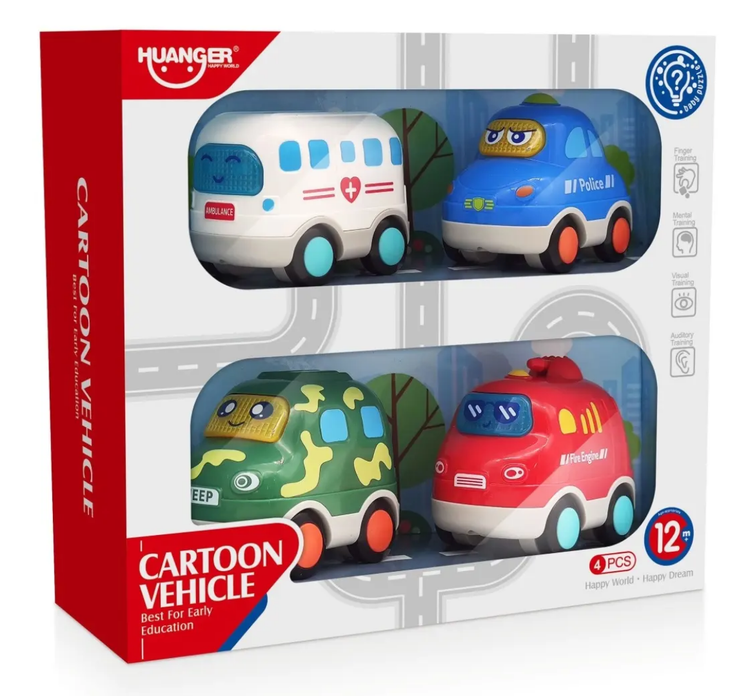 اسباب بازی 4 عددی ماشین از برند هانگر مناسب کودکان 12 ماه به بالا یک اسباب بازی بسیار بامزه با 4 عدد ماشین بامزه است که دارای جلوه های نوری و صوتی است که برای کودکان بسیار سرگرم کننده و هیجان انگیز است و دارای ابعاد طول 8.5 عرض 5.5 ارتفاع 6.5 سانتیمتر است
