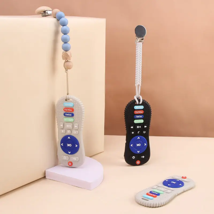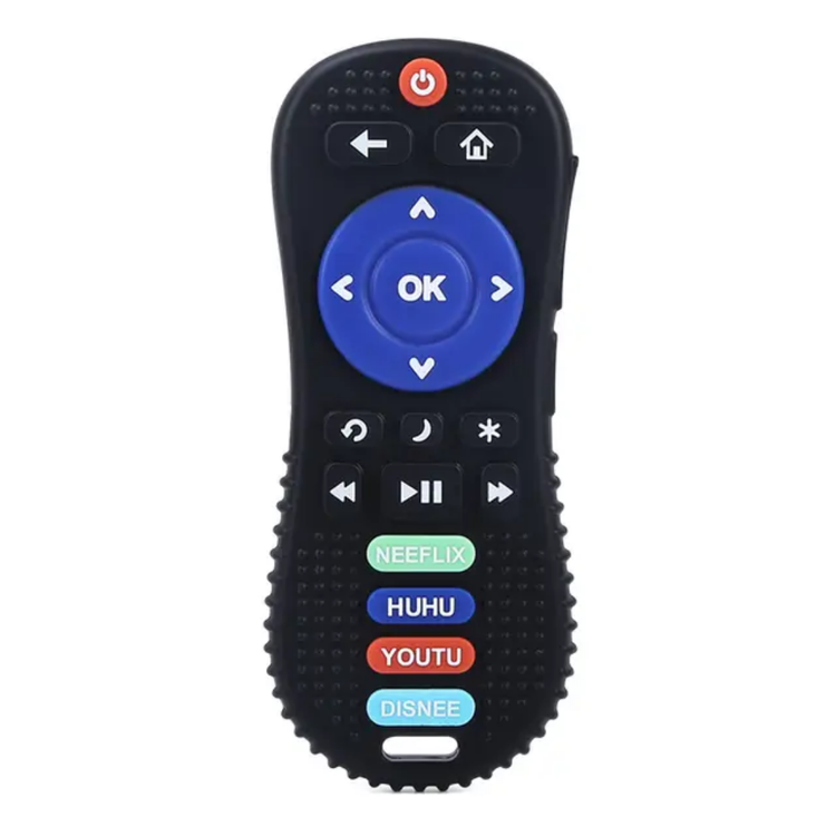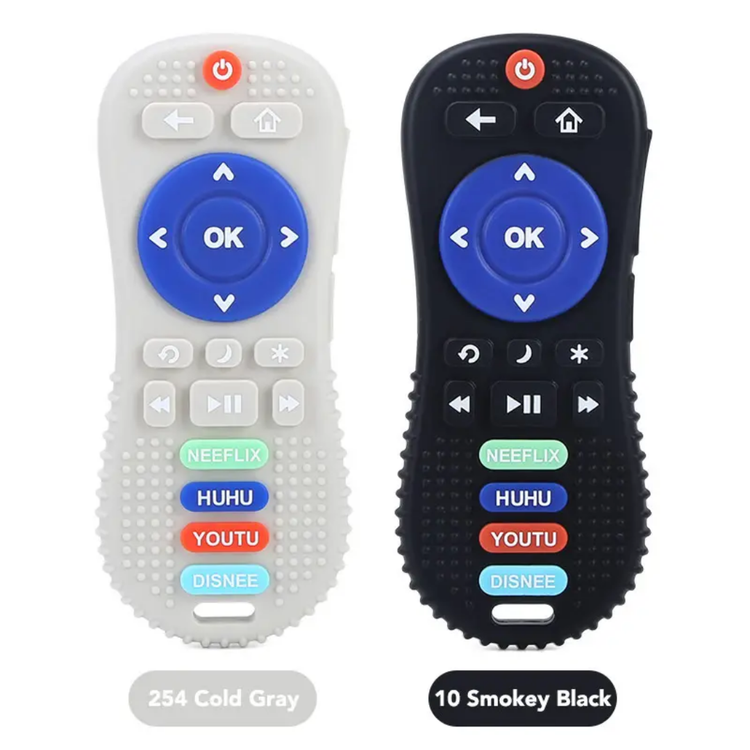 علاقهمند بودن کودکان به وسایل الکتریکی چون کنترل و بازی با آنها باعث میشود که شکل و طرح کنترلی بودن این محصول برای آنها جذاب باشد و این دندانگیر را به یک اسباب بازی دوستداشتنی برای آنها تبدیل کند. در قسمت پشتی این دندانگیر، حفرههایی با اشکال مختلف مثل اشکال هندسی و فانتزی وجود دارد که به تقویت حس لامسه کودک کمک میکند.