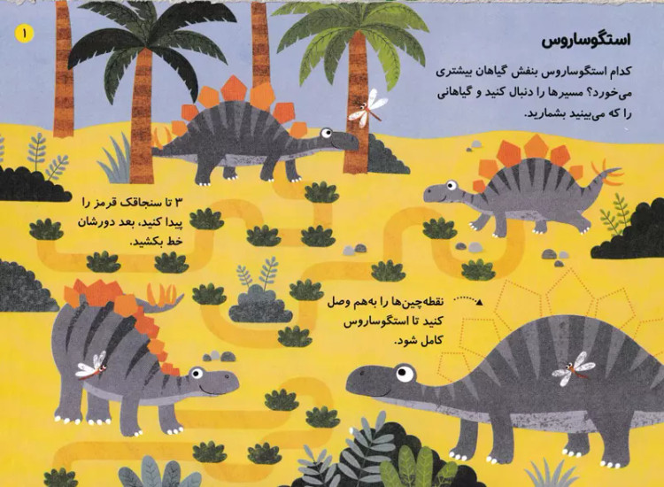 کودکان با این تمرینها ساعتها سرگرم میشوند و به دنیاهای مختلف میروند، به حیوانات باغوحش و جنگل سر میزنند و به سرزمین دایناسورهای خیالی سفر میکنند. تازه کلی هم چیزمیز یاد میگیرند: اعداد و نقطهچینی، نقاشی و رنگآمیزی.