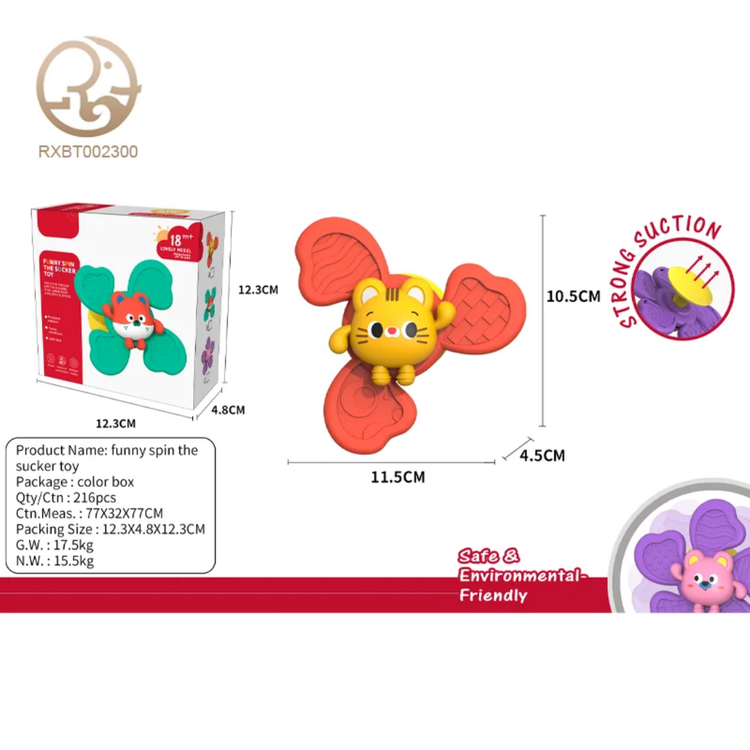 جنس این اسپینر از پلاستیک با کیفیت می باشد. این اسپینر ها را با چسبونک ها مخصوص پشت این محصول می توانید به سطوح صاف متصل کنید. این اسپنر حمام کودک دارای جغجغه در پره های خود می باشد که موجب سرگرمی بیشتر کودکان می شود.