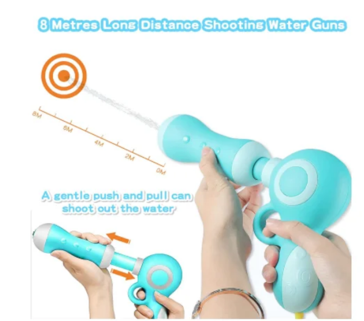 زمانی که خشاب این تفنگ پلاستیکی آب پاش را به سمت عقب و جلو بکشید آب شلیک میکند و نبرد آبی شما آغاز میشود خشاب متحرک این تفنگ آب پاش کوله ای بسیار روان است و با حرکت تند آن بچهها میتوانند سریع تر رقیب خود را خیس کنند.