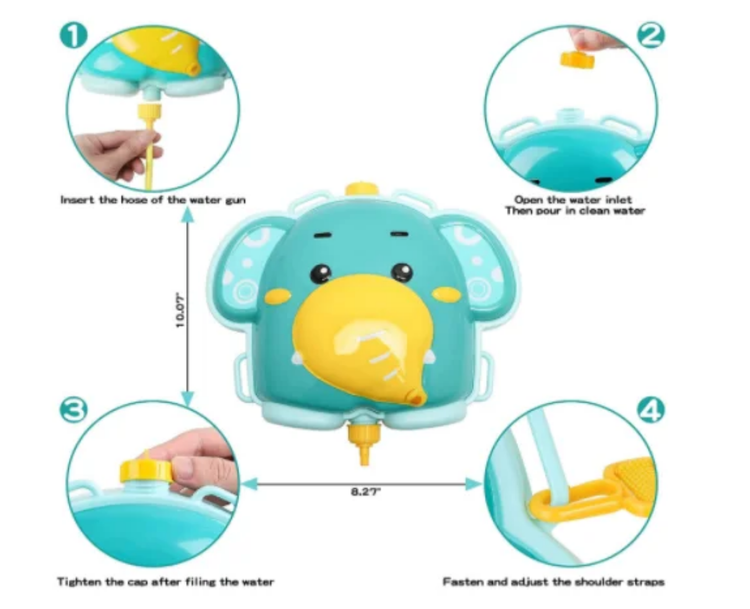 اسباببازیهای کودکان: یک کولهپشتی حیوانی با تفنگ آبی تهیه کنید برای ساعت ها سرگرمی