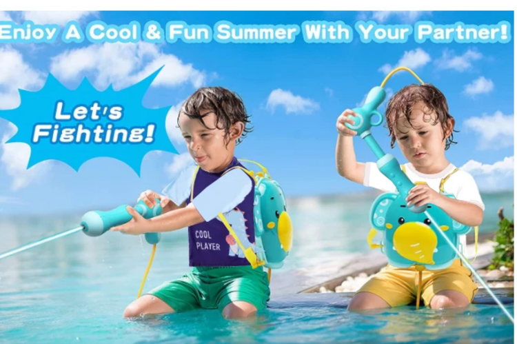اسباب بازی تفنگ آب پاش با کوله پشتی مخزن دار، هدیه دوست داشتی برای تولد یا سیسمونی کودکان بالای 3 سال میباشد.