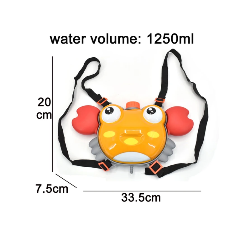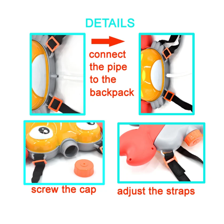 برای اینکه بازی با تفنگ آب پاش برای بچههای کوچولو راحتتر باشد و نیازی به حمل یک تفنگ سنگین پر از آب نداشتهباشند، مخزن این اسباب بازی آب بازی به صورت کوله پشتی طراحی شدهاست و با وصل کردن بندهای کوله، میتوانید آن را به پشت کودک خود بیاندازید تا یک آب بازی راحت و دلنشین با هم بازی های خود تجربه کند.