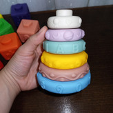این برجها از حلقههای رنگی نرم و منعطف تشکیل شدهاند که هر حلقه دارای برآمدگیها و اشکال برجسته است. این ویژگی باعث میشود کودک علاوه بر یادگیری مفاهیم ترتیب و اندازه، بتواند از لحاظ حسی نیز تحریک شود.