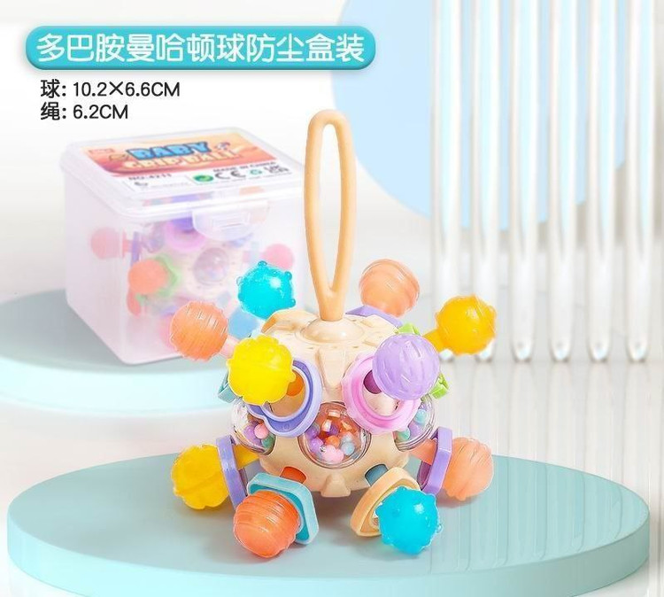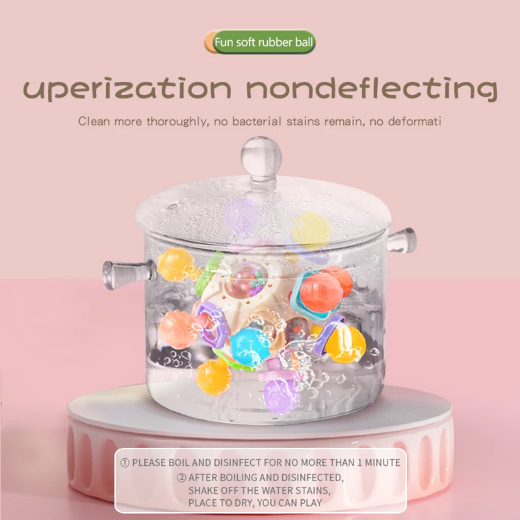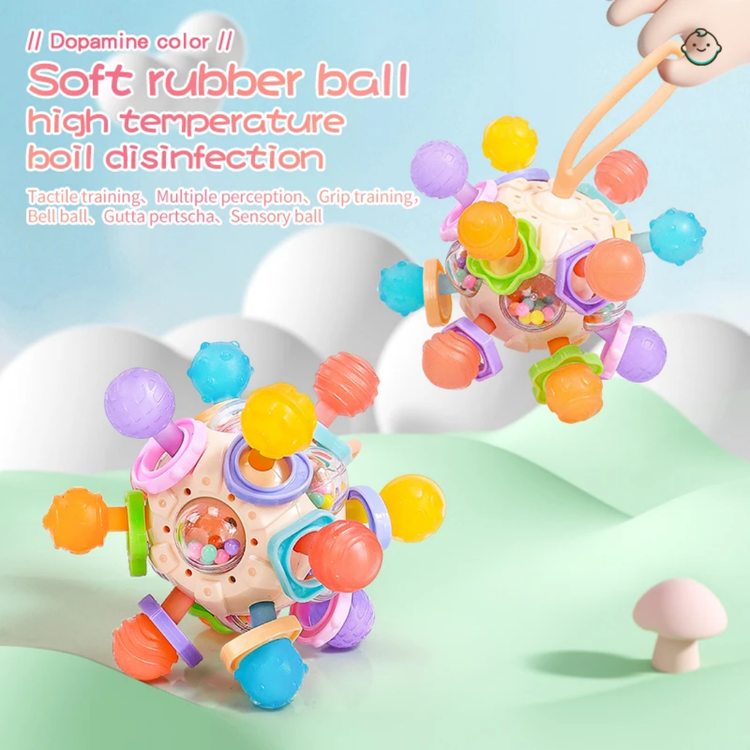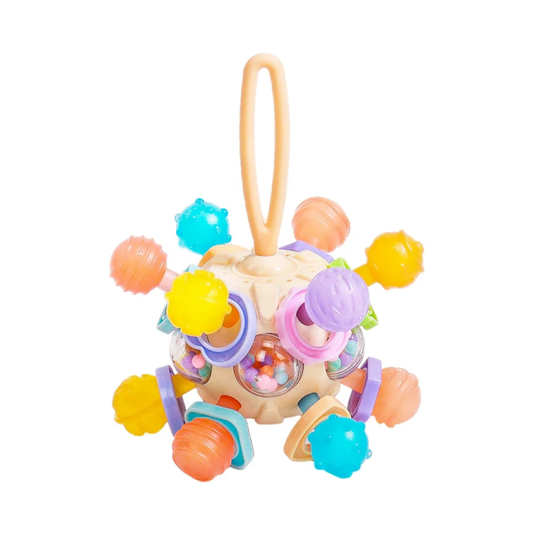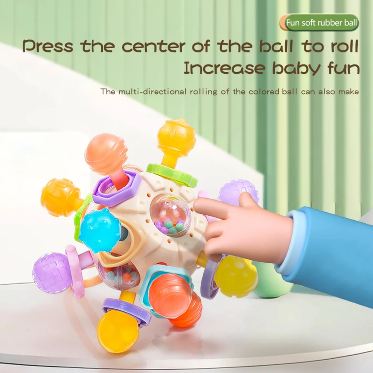 دندان گیر فضایی یک توپ با تعداد زیادی دندان گیر میباشد همین موضوع باعث شده تا نوزاد هنگام استفاده از این محصول بتواند از هر نقطه ایی که راحتتر بود و دسترسی داشت خارش لثه خود را برطرف کند.