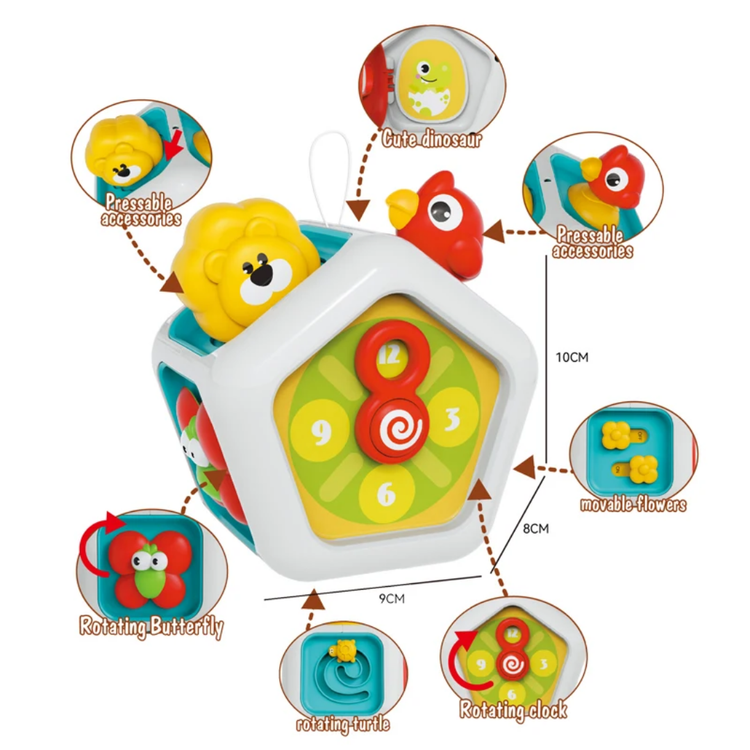 بیزیبال، یه اسباببازی آموزشی چندکارهست که مخصوص تقویت مهارتهای کودک در سالهای اولیه رشد طراحی شده هر وجه این بیزی بال آیتم های خاصی داره