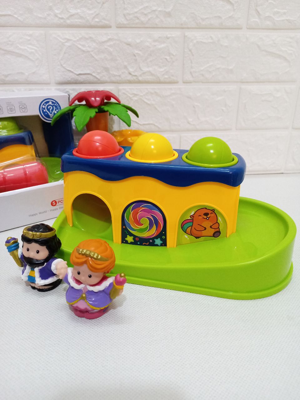 کودک بایستی توپ ها را در جایگاه خود گذاشته و با چکش به آنها ضربه بزند. این کار در عین سادگی به هماهنگی بین چشم و دست کودک کمک می کند. ضمن اینکه مهارتهای دستی و حرکتی او را نیز تقویت کرده و تمرکز او را بالا می برد.