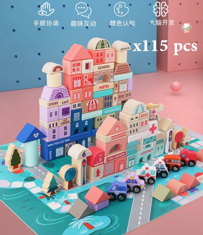 بریکس ها یکی از بهترین بازی های چوبی برای پرورش خلاقیت کودکان می باشند .همراه این بازی یک پازل با قطعات درشت قرار دارد که کودکان می توانند بعد از درست کردن این پازل که شهر را شبیه سازی می کنند با استفاده از بریکس ها ساختمان های شهر را درست کنند و با داستان سازی در این شهر پازلی با ماشین دور بزنند. همچنین چند وسایل نقلیه ، شخصیت ها ، درخت و علایم راهنمایی و رانندگی نیز همراه بازی قرار داده شده است. بریکس 115 قطعه چوبی شهرسازی با پازل دارای رنگ های طبیعی و سازگار با محیط زیست است .
