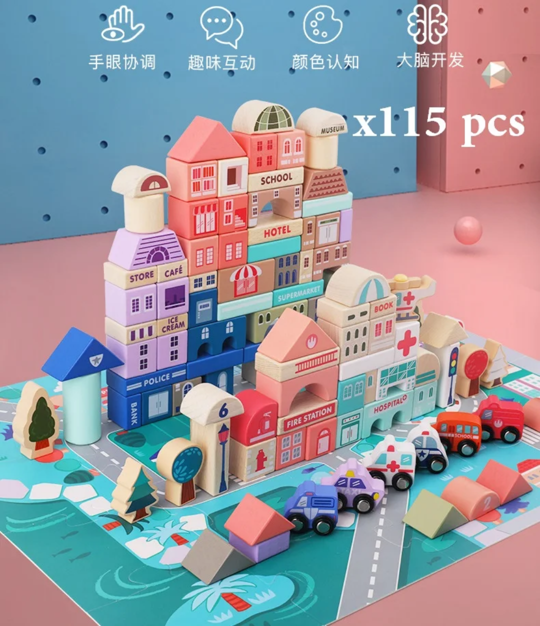 بریکس ها یکی از بهترین بازی های چوبی برای پرورش خلاقیت کودکان می باشند .همراه این بازی یک پازل با قطعات درشت قرار دارد که کودکان می توانند بعد از درست کردن این پازل که شهر را شبیه سازی می کنند با استفاده از بریکس ها ساختمان های شهر را درست کنند و با داستان سازی در این شهر پازلی با ماشین دور بزنند. همچنین چند وسایل نقلیه ، شخصیت ها ، درخت و علایم راهنمایی و رانندگی نیز همراه بازی قرار داده شده است. بریکس 115 قطعه چوبی شهرسازی با پازل دارای رنگ های طبیعی و سازگار با محیط زیست است .