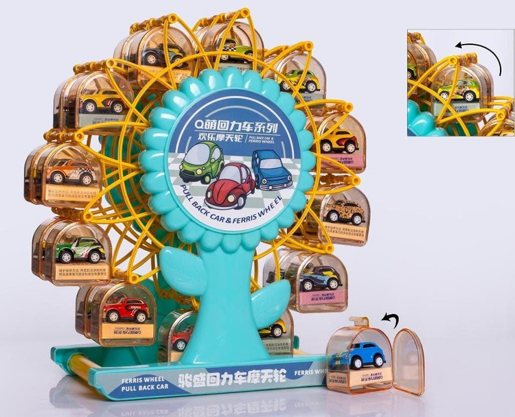 این چرخ و فلک جذاب همراه 24 عدد ماشین فلزی عقب کش کوچک