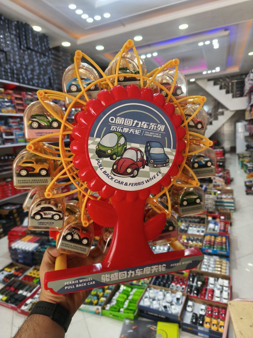 این چرخ و فلک جذاب همراه 24 عدد ماشین فلزی عقب کش کوچک