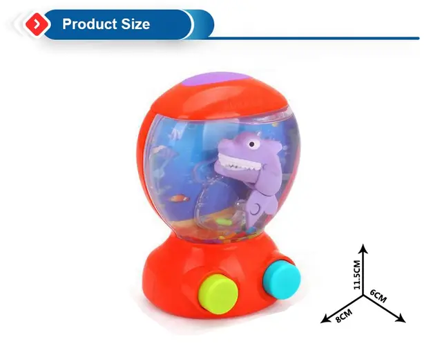 حالا با فشار دادن دکمه آبی رنگی که در پایین اسباب بازی است.