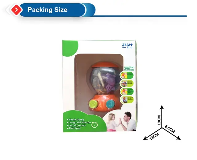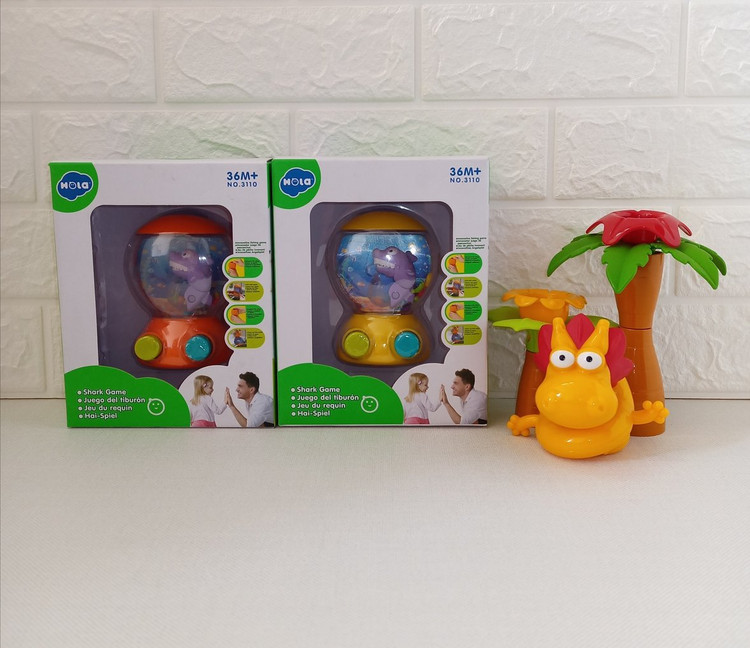 وقتی دکمه زرد رنگ را فشار میدهیم ،دهان کوسه باز می شود و یک جهش به سمت جلو انجام می دهد.