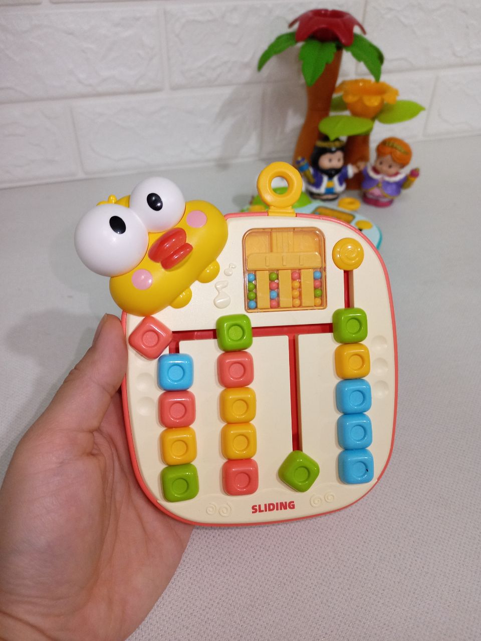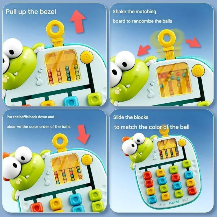 این بازی بیشتر به تقویت مهارتهای دقت، ترتیبدهی و حافظه کودک کمک میکند. در واقع، کودک باید با تکان دادن دسته بالای بازی، مهرهها به ترتیب جدیدی حرکت میکنند و سپس کودک باید مهرهها را در رنگهای صحیح و به ترتیب درست بچیند.