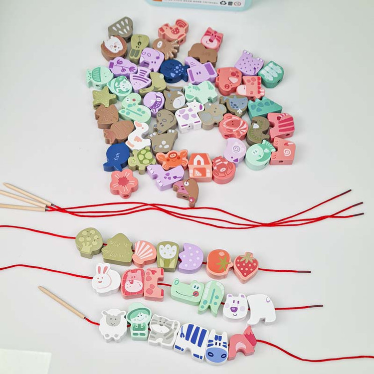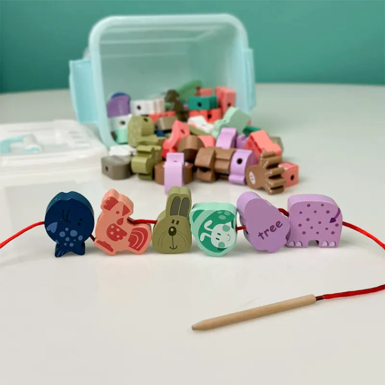 اسباب بازی چوبی نخ و مهره طرح حیوانات با هدف آموزش به کودک و شناخت حیوانات، اسامی آنها، املای کلملات و رنگها قابلیت چیدمان و نخ کردن حیوانات مختلف به سلیقه کودک برای آموزش حروف الفبای انگلیسی به کودک خود در هنگام بازی می باشد. یکی از بهترین بازی ها برای کودکان بالای سه سال بازی هایی هستند.
