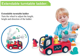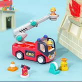 اهرم را می توان با دست ۳۶۰ درجه چرخاند و یا از وسط اهرم ارتفاع آن را بالا پایین کرد. یک بوم نیز بروی اهرم قرار گرفته که آتش نشان را می توان درون آن قرار داد با به خاموش کردن آتش کمک کند. ماشین دارای چهار چرخ می باشد که با هل دادن می تواند ماشین را حرکت دهد. رنگ بندی ماشین قرمز می باشد که در آن از رنگ های مشکی و سبز و سفید نیز استفاده شده است. بروی ماشین کلیدهای برای پخش موزیک و افکت صوتی است که برای کودکان بسیار جذاب است. ماشین با ۳ باتری ۱٫۵V روشن میشود و یک چرخ چرخشی در زیر ماشین برای حرکت اتومات دارد.