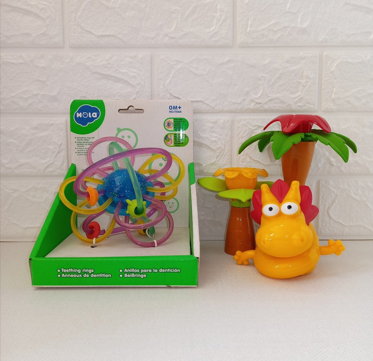 اسباب بازی را تکان دهید تا توپ داخل آن صدا ایجاد کند.